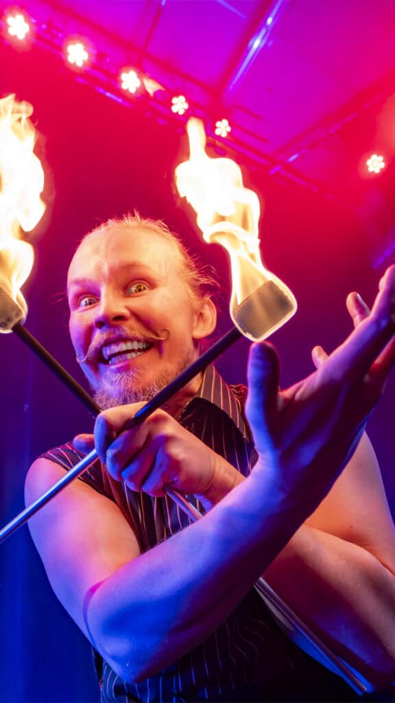 Medverkande: Två gycklare från Gycklargruppen TRiX