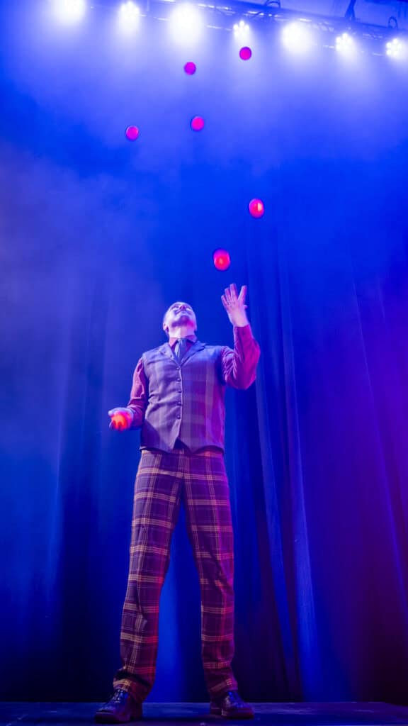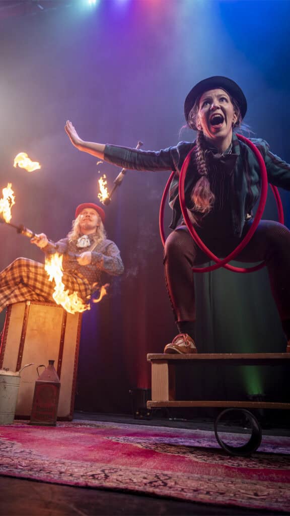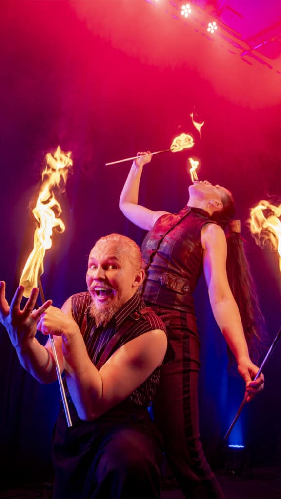 Vi livar upp mellan rätterna med en svårslagen publikkontakt och pricksäker humor. Showen kan innehålla allt från höga enhjulingar till dödsföraktande knivkastarnummer som sent kommer att glömmas.