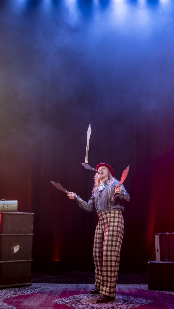 Och så vänder allt. Plötsligt skrattar folk, rör på sig, testar något nytt tillsammans – och efter en stund står hela rummet och jonglerar.